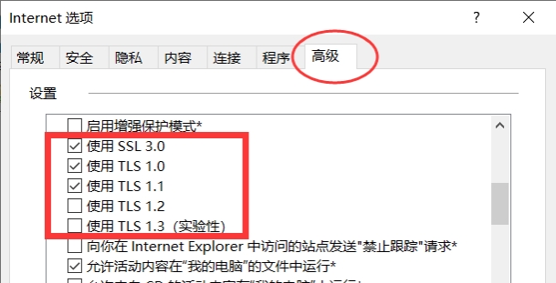 解决方案:1、手动设置IE浏览器,Internet选项——高级——SSL、TLS都勾起来