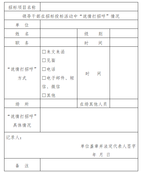 监督部门领导干部“说情打招呼”的,招标人、招标代理机构应当向该监督部门的上级提交记录表及相关佐证材料。