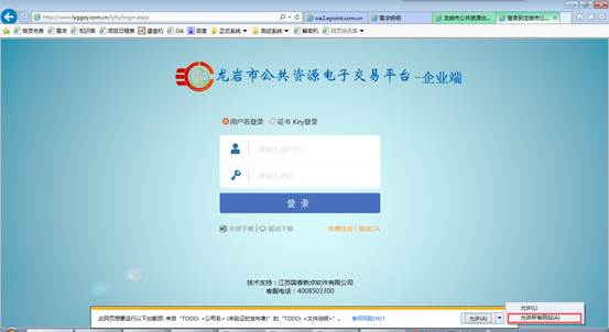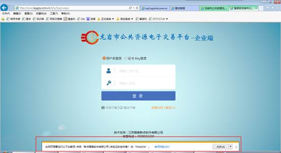 打开系统登录页面,运行加载项的提示,有可能在网页下方,也有可能在网页上方,请仔细留意: